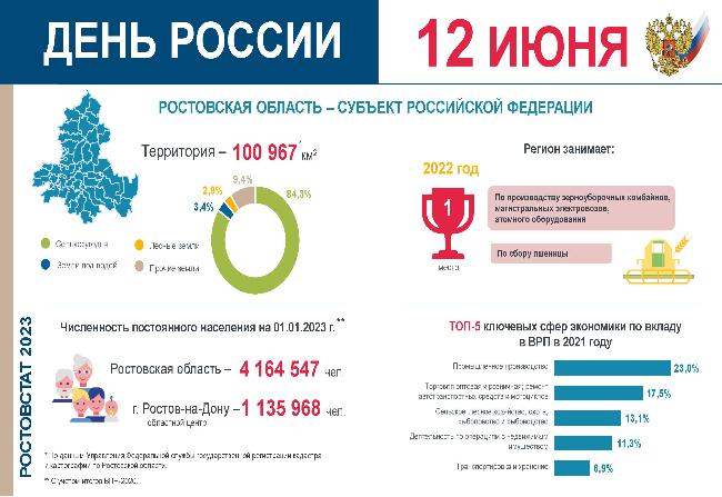 Ростовстат поздравляет жителей Ростовской области с праздником и предлагает ряд статистических данных, характеризующих вклад нашего региона в общероссийские показатели.