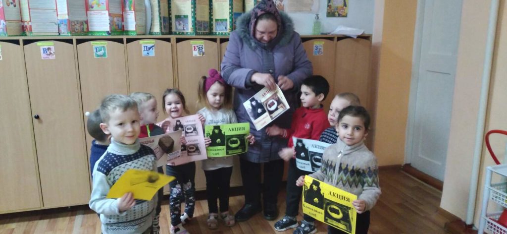 Ключевой символ акции – кусочек хлеба весом 125 граммов: именно такая ежедневная минимальная норма была установлена во время блокады Ленинграда. «Блокадный хлеб», ведь этот маленький черный кусочек из коры, жмыха и мучной пыли, который называли хлебом, в годы войны был настоящей ценностью и стал символом жизни, надежды и выносливости. Участники акции памяти «Блокадный хлеб», юные «волонтеры» вручили сотрудникам детского сада, родителям и просто прохожим листовки и призвали присоединиться к Всероссийской акции. Главная ее цель – сохранить память о трагедии, с которой столкнулись наши соотечественники, которая развернулась среди общего горя Великой Отечественной войны. Когда мы едины — мы непобедимы!