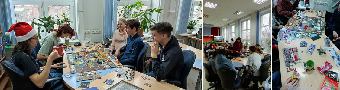 В новогодние каникулы ребятам из клуба настольных игр «День игры» непогода не помешала встречам с друзьями в уютной атмосфере библиотеки. С 9 по 15 января в отделе «Электронный зал» ЦГПБ имени А.П. Чехова состоялись турниры по настольным играм: «Бэнг», «Мачи-коро», «Повелитель Токио», «Эверделл», «Цитадели», «Сумасшедший лабиринт», «Ужас Аркхема», «Дженга», «Мафия». Ребята с удовольствием играли сами и обучали новичков.