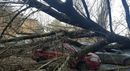 В Ростове огромное упавшее дерево раздавило четыре автомобиля