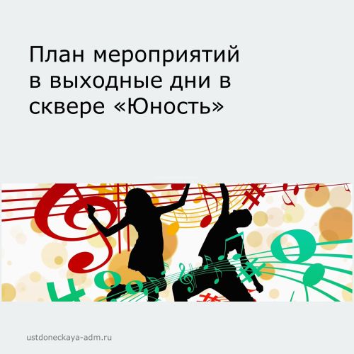 Приглашаем всех желающих на культурно-массовые мероприятия, проводимые в сквере «Юность» в выходные дни