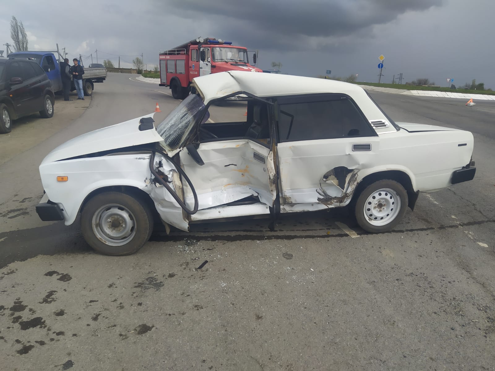 Днем 24.04.23 г., в 12 часов 30 минут, на 7 км + 65 м автодороги «Миллерово-Луганск» водитель 1950 года рождения, управляя «ВАЗ-2105», по предварительным данным, при проезде перекрестка с круговым движением не уступил дорогу автомобилю «КАМАЗ», под управлением водителя 1969 года рождения, в результате чего произошло столкновение ТС.