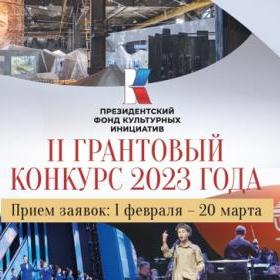 1 февраля 2023 года стартовал новый грантовый конкурс Президентского фонда культурных инициатив. Президентский фонд культурных инициатив начал заявочную кампанию на второй грантовый конкурс 2023 года на поддержку проектов в области культуры, искусства и креативных (творческих) индустрий.