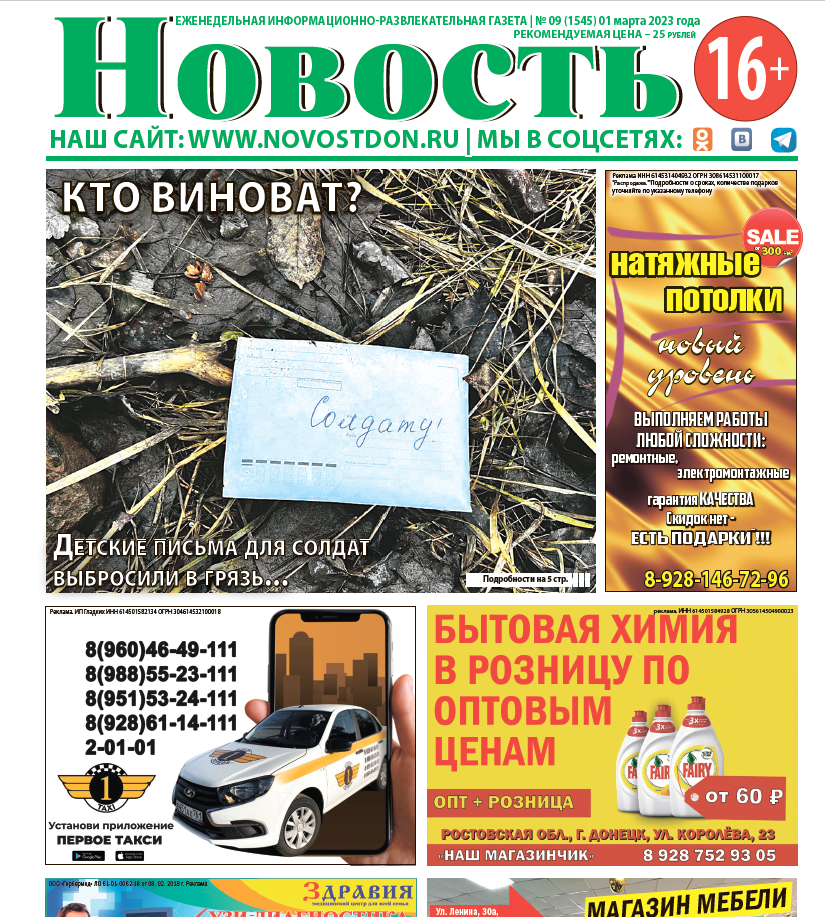 ТВ-программа, гороскопы, вкусные рецепты, реклама и объявления. Это и многое другое в свежем выпуске газеты «Новость» от 1 марта. Уже в продаже!
