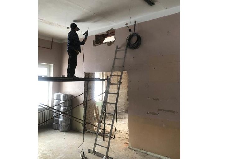 «В настоящее время на объекте ведутся демонтажные работы помещений (снятие старой штукатурки, дверных полотен, подоконных досок и др.), подготовка к стяжке полов, начаты работы по замене электрических сетей», — пишет источник.