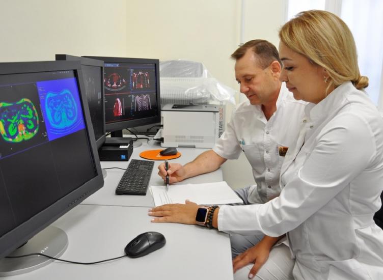 Для отделения радионуклидной диагностики в рамках нацпроекта «Здравоохранение» приобрели самый современный аппарат для выполнения однофотонной и рентгеновской компьютерной томографии. Он позволяет проводить, в том числе высокоточные исследования при патологиях костной системы, щитовидной железы, почек и печени.