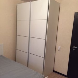 В комнате-кровать и шкаф