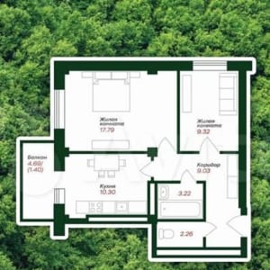 ???? Жилaя кoмнaтa — 17,79 кв.м.