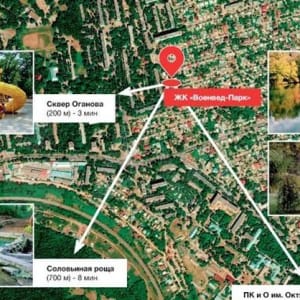 6-этажный жилой комплекс «Военвед-Парк» находится в уютной экологически чистой части Ростова – микрорайоне Военвед. В шаговой доступности от него расположены сразу три «зеленые» зоны: сквер Оганова (200 м), парк имени Октября (900 м) и Соловьиная роща (700 м).