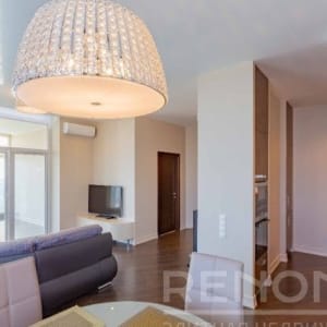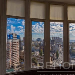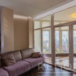 Квартира с панорамным остеклением, красивым видом на город, укомплектованная мебелью и бытовой техникой